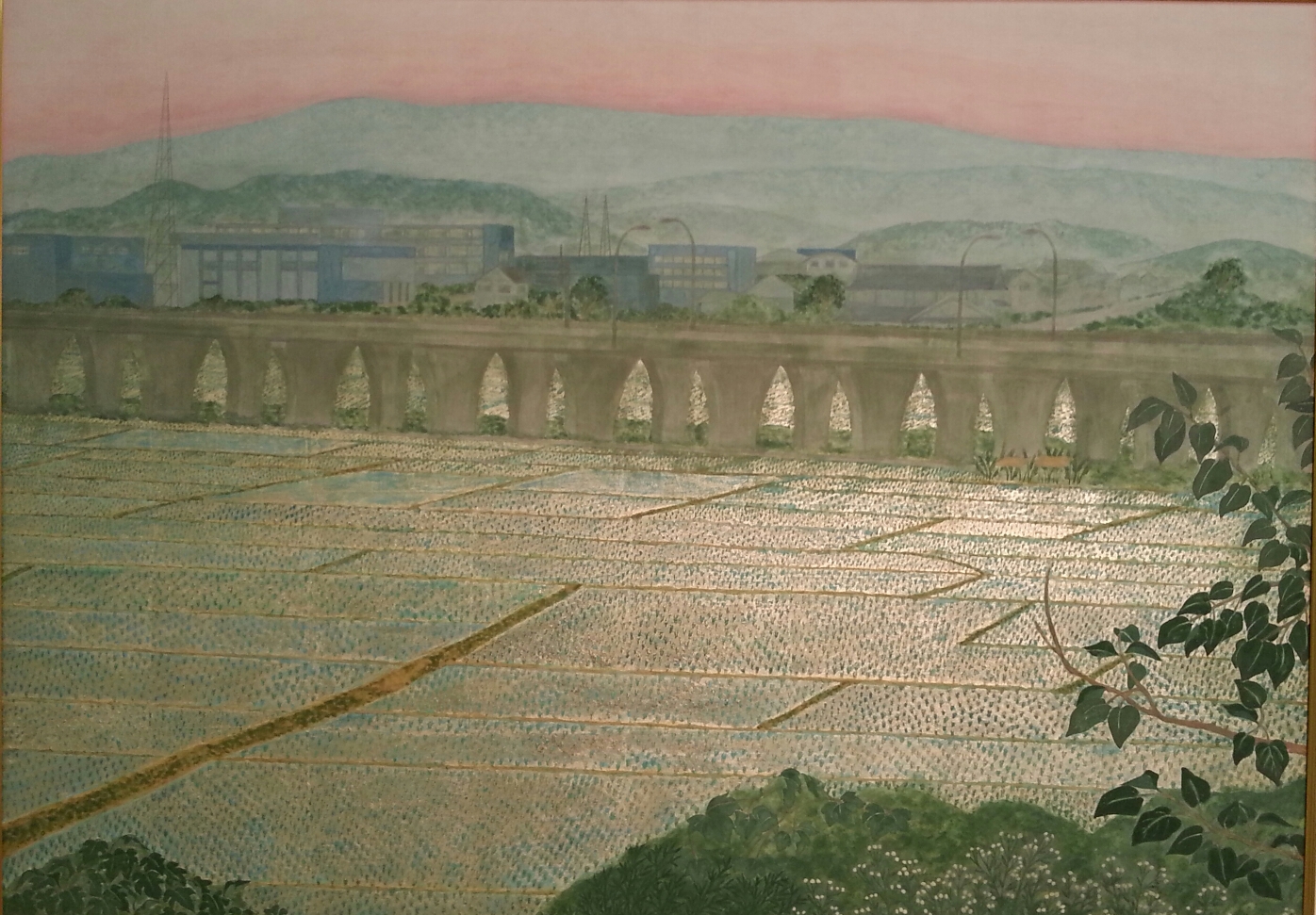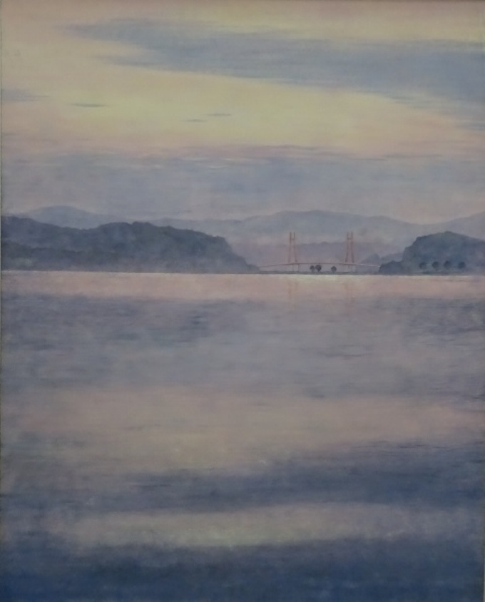 青木義幸 「朝ぼらけ赤い吊橋のある風景」 第46回創画展 |